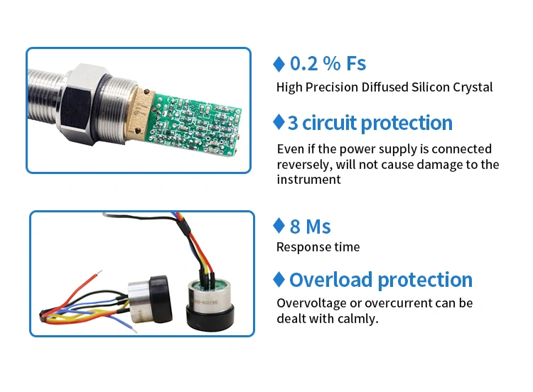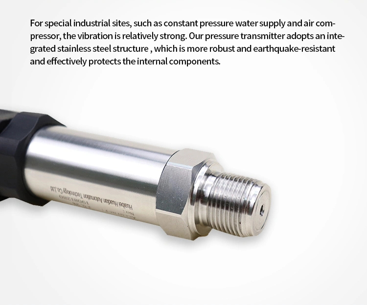 Illustrate:pressure transmitter pressure sensitive core adopts high performance silicon piezoresistive pressure filling core. The internal ASIC converts the sensor millivolt signal into standard voltage, current or frequency signal, which can be directly connected with computer interface card, control instrument, intelligent instrument or PLC. Current output mode can be used for distance transmission.