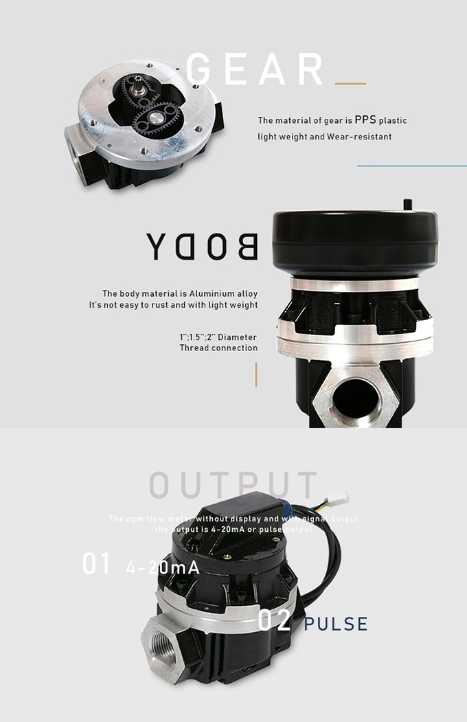 Illustrate:The OGM Series oval rotor positive displacement flow meters will measure your high or varying viscosity liquids. The body takes high pressures and is available in either aluminum PPS. The meter can be supplied with a low cost mechanical totaliser or an LCD display mounted on the top of the flow meter.
